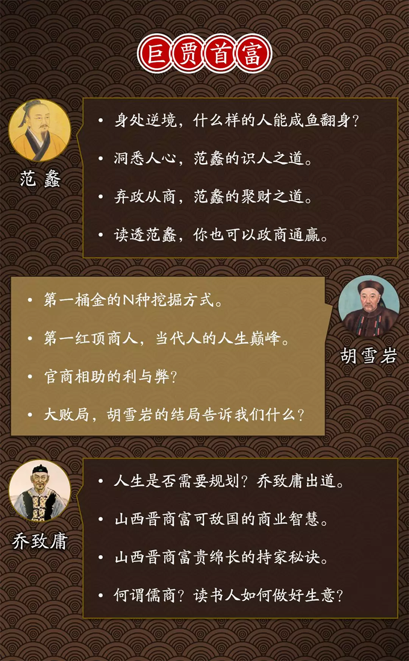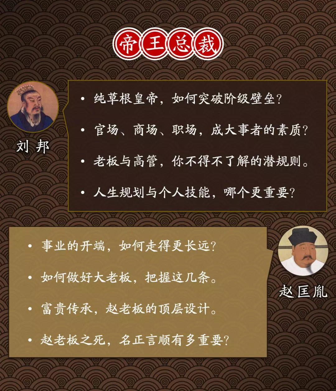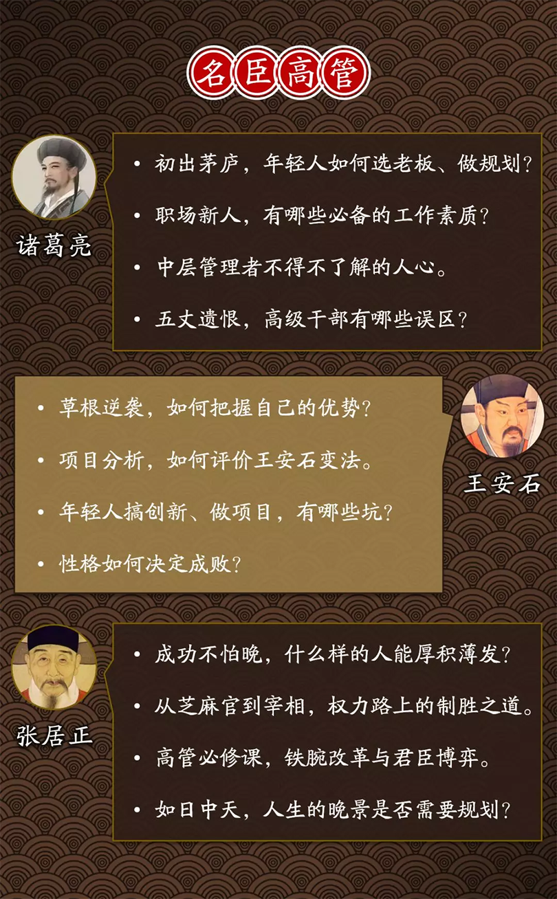 從策劃選題、人物確定到史料篩選,我們前前后后整整花了大半年的時間。從歷代的帝王、高管、大儒、巨賈中,我精心挑選出了10位人物,相信對你的工作、生活、事業(yè),一定‘管用’!”
