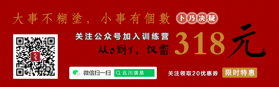 微信搜索“北川演易”,即可免費(fèi)觀看包括如何起卦、占測(cè)投資、占測(cè)婚姻等教學(xué)視頻。每周更有免費(fèi)古法易經(jīng)基礎(chǔ)、實(shí)戰(zhàn)案例推送!